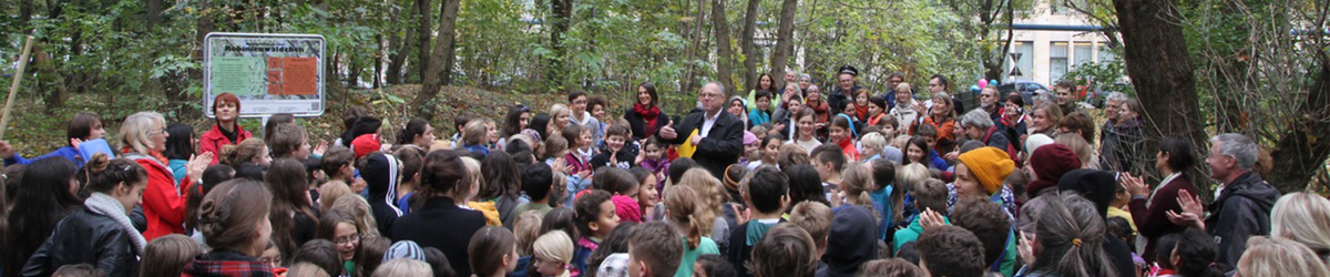 Seit 6.11.14 können die Kinder im Robinienwäldchen, einem „geschützten Landschaftsbestandteil“, auf rund 7.ooo m² spielen und lernen. Durch selbstbestimmte Naturerfahrung kann ein emotionaler Zugang zur Natur entstehen und mit Hilfe von Informationen zu Pflanzen und Tieren das Verständnis für Natur und Umwelt gefördert werden.