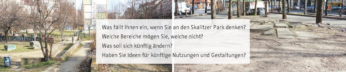 Der Skalitzer Park zwischen Oranien- und Mariannenstraße soll im Rahmen des Förderprogramms Städtebaulicher Denkmalschutz neu gestaltet werden. Wenn Sie gerne bei der Neugestaltung mitmachen möchten, geben Sie uns bitte Bescheid. Das vorab zu wissen ist wichtig, denn je nachdem, wie viele Menschen bereit sind mitzumachen, werden verschiedene Beteiligungsveranstaltungen geplant (Durchführungszeitraum Sommer 2018).