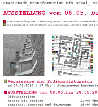 Vernissage und Diskussion zur Ausstellung >Stasistadt _ Transformation MfS Areal<